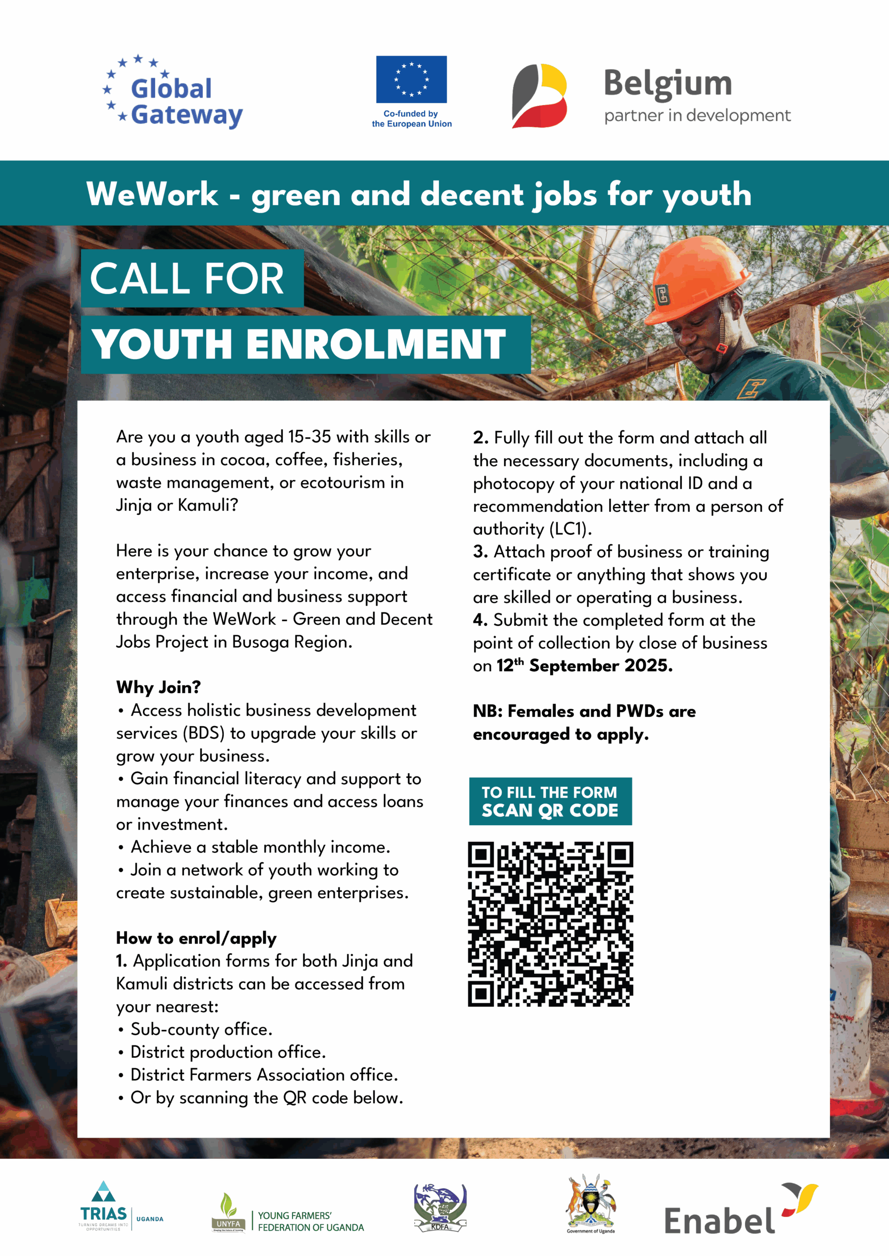 Here is your chance to grow your enterprise, increase your income, and access financial and business support through the WeWork – Green and Decent Jobs Project in Busoga Region.